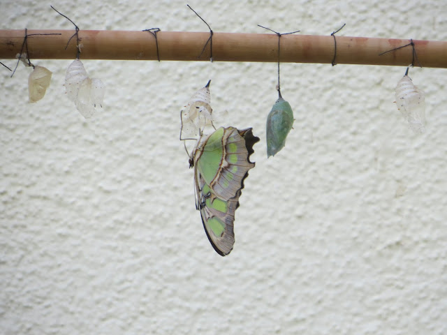 | Pegamos uma borboleta saindo do casulo! Ao lado outra quase pronta pra sair. |