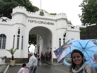 No outro dia queríamos muito conhecer o Forte de Copacapana e valeu muito a pena. O tempo estava chuvoso, mas nada que nos impedisse de sair do hotel. O forte era muito bonito, maior dos que já conheci de Floripa. Com canhões gigantes estrategicamente posicionados.