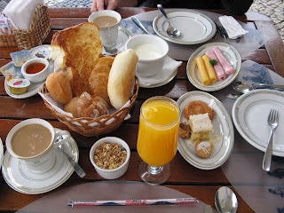 Tivemos que esperar quase uma hora pra nosso café da manhã chegar… Tirando isso foi muito gostoso! Pedimos a opção “Café da manhã especial” com direito a pão, queijo, presunto, um pedacinho de bolo, suco de laranja.